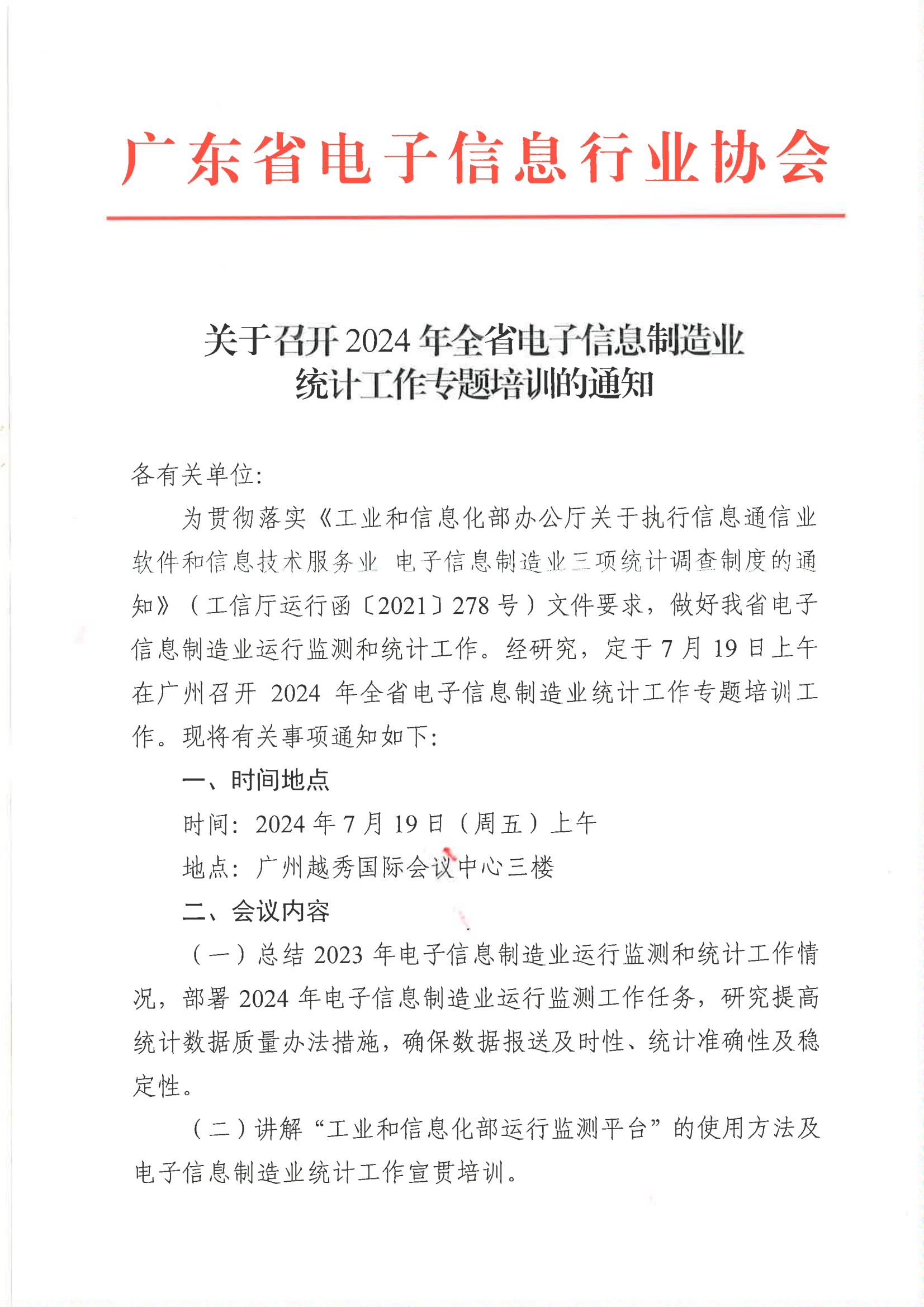 关于召开2024年全省电子信息制造业统计工作专题培训的通知