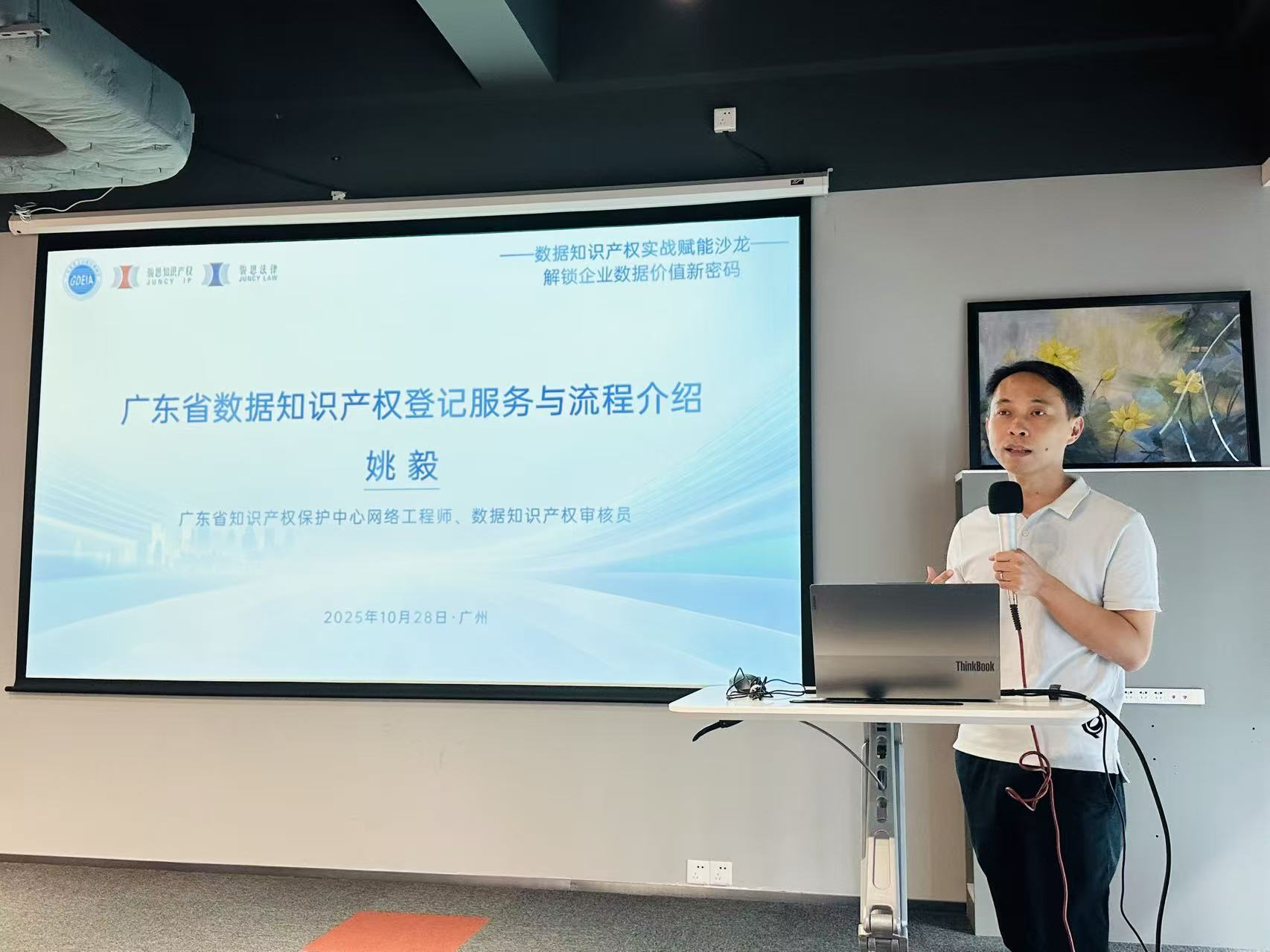本次沙龙特邀两位行业权威专家重磅分享,为参会企业带来“政策+实战”双维度干货。广东省知识产权保护中心网络工程师、数据知识产权审核员姚毅,以“广东省数据知识产权登记服务与流程介绍”为主题,结合最新试点政策,详细拆解数据知识产权登记的关键环节,帮助企业明晰数据知识产权路径。