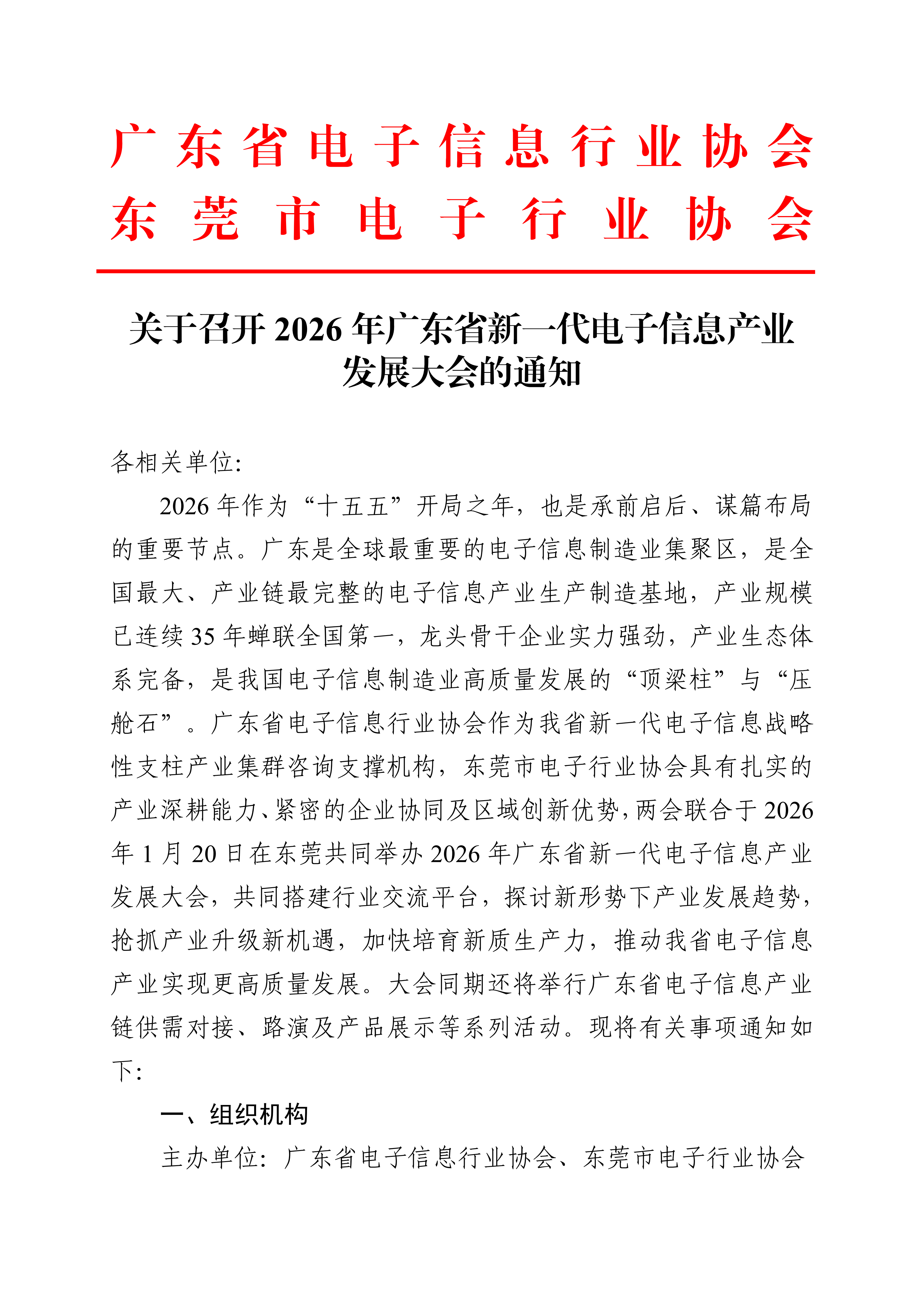 关于召开2026年广东省新一代电子信息产业发展大会的通知