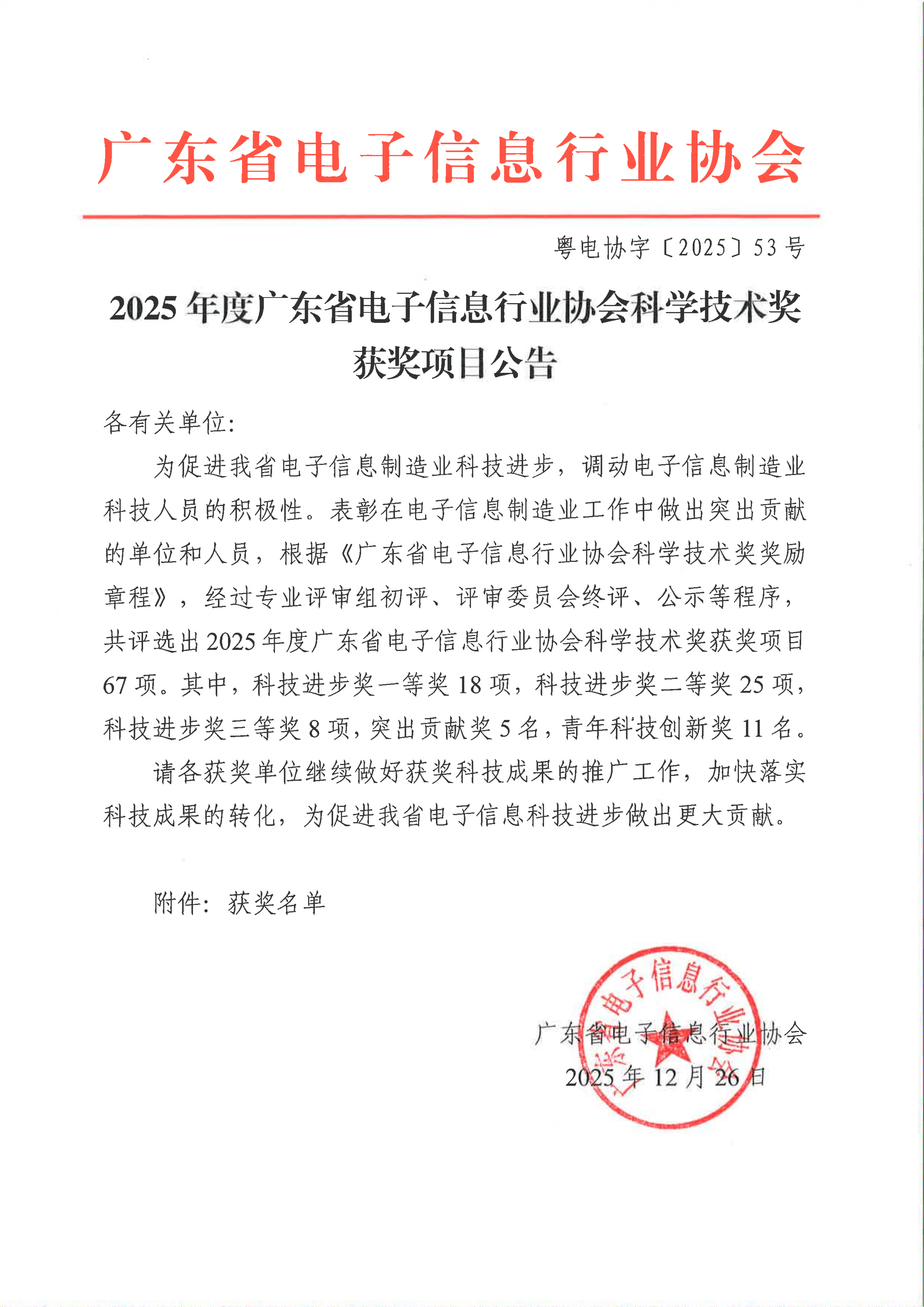 2025年度广东省电子信息行业协会科学技术奖获奖项目公告