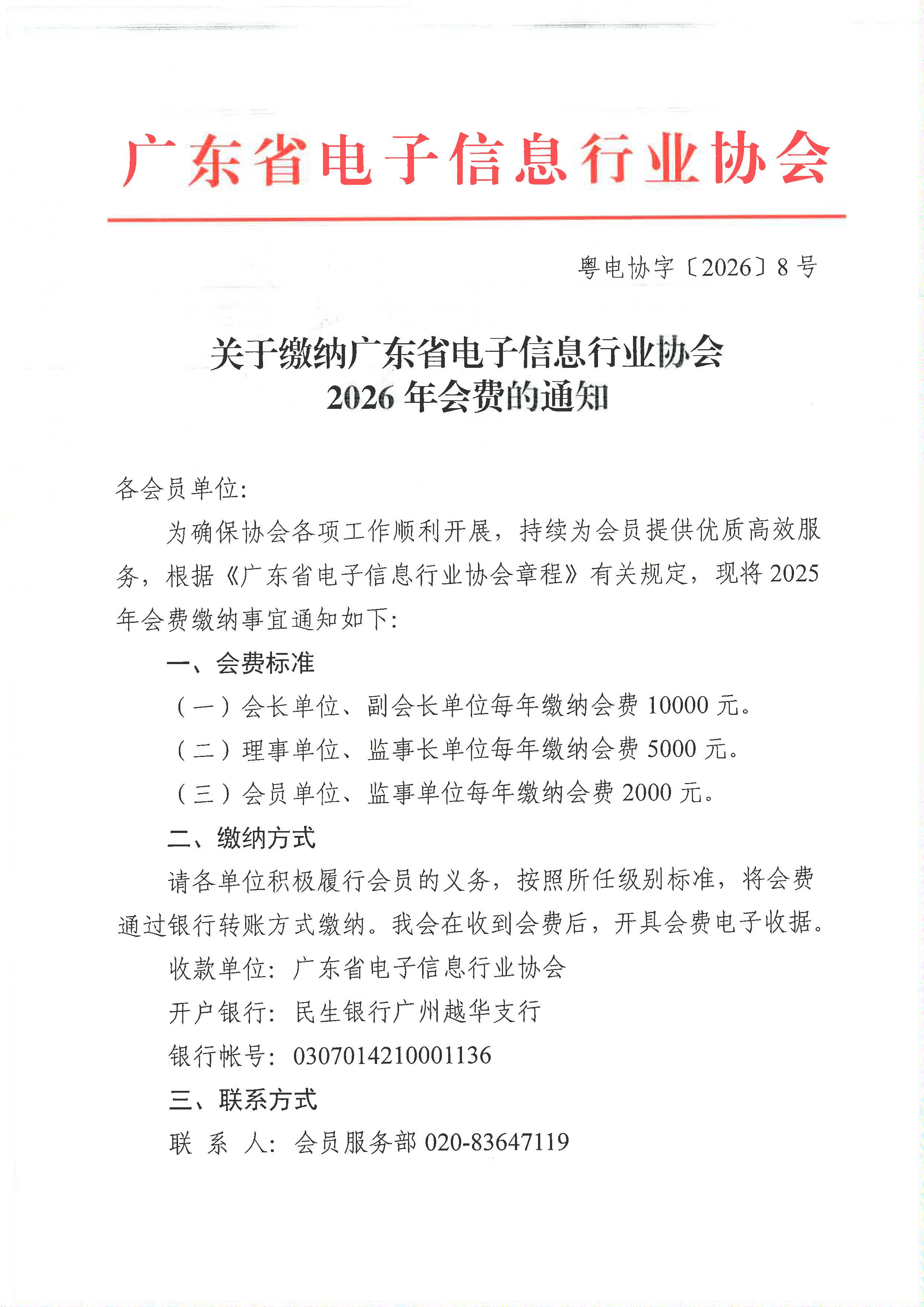 关于缴纳广东省电子信息行业协会2026年会费的通知