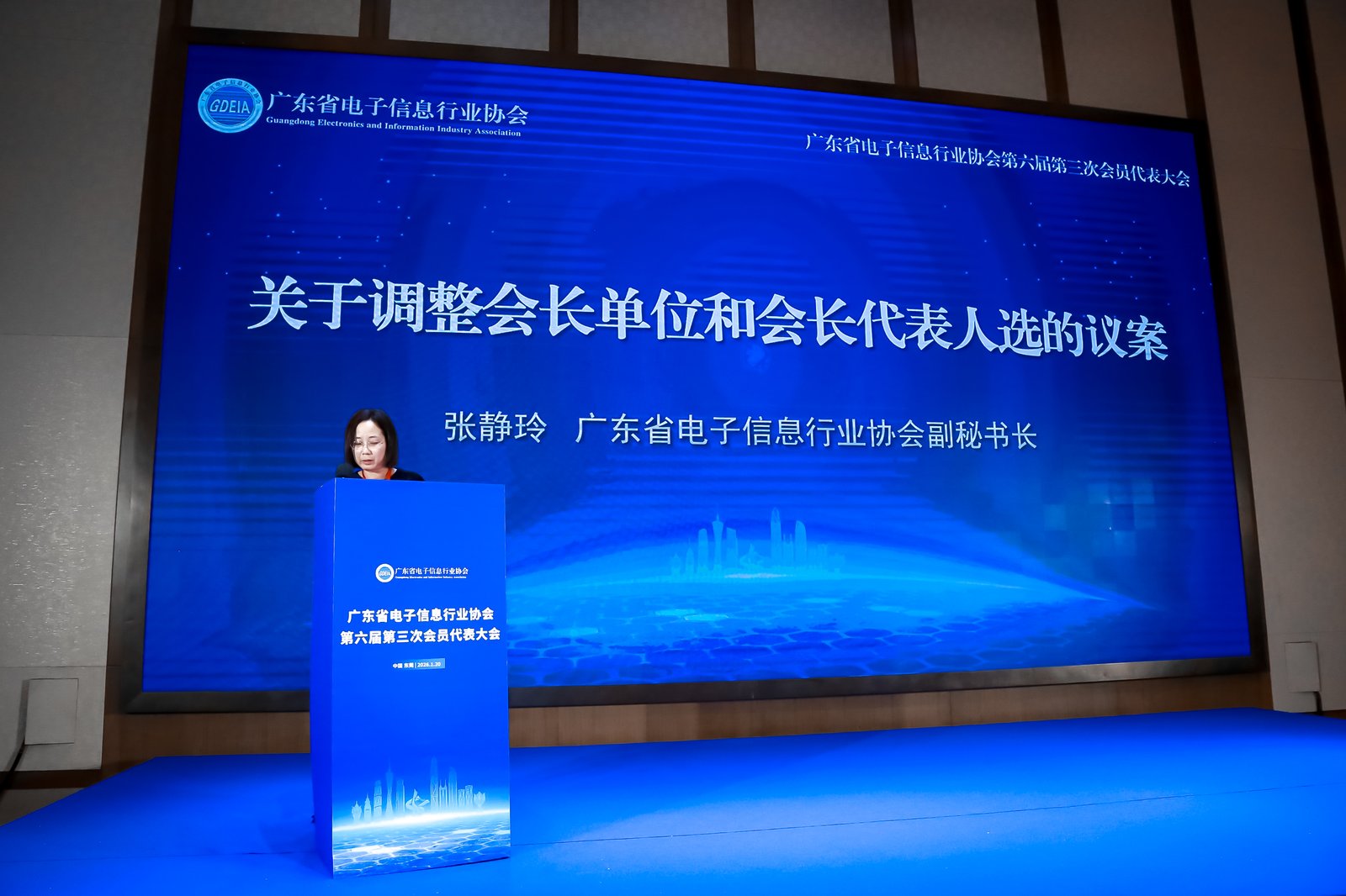 2026年1月20日,广东省电子信息行业协会在东莞召开协会第六届第三次会员代表大会暨第六届第五次理事会及监事会,协会会员代表250余人参加会议。会议主要听取并审议协会秘书长许晓民作的《广东省电子信息行业协会2025年理事会工作报告》、协会监事长邱宏斌作的《协会2025年理事会财务报告及监事会工作报告》、协会副秘书长张静玲作的《关于协会第六届第三次会员代表大会选举监票人、计票人提名名单的说明》和《关于调整会长单位和会长代表人选的议案》等内容。