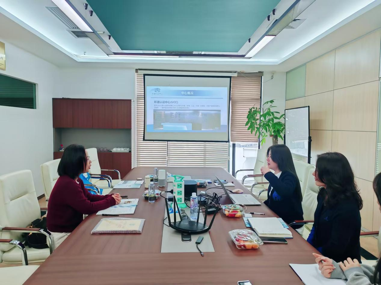 交流期间,UCC研发部副部长兼国信低碳副总经理姚蔚为协会一行详细介绍了其发展历程、资质体系与服务能力。作为国内起步早、资质全、覆盖面广的权威第三方认证机构,UCC前身是1993年成立的隶属于深圳市质量技术监督局的深圳质量认证中心,后经CNCA 批准、CNAS 认可,具备 ISO9001、ISO14001、ISO45001、TL9000 通信、QC080000 有害物质、ISO27001 信息安全、ISO20000 信息技术服务、能源管理与节能评估等全系列认证与检测评估资质,服务覆盖电子信息、装备制造、通信、新能源等 30 余个行业,颁证数量超过15000张,总部设在深圳,在上海、广州、珠海、东北、杭州、云南、重庆、宁波、无锡、江西、青岛等地设有二十多家分公司或办事处,是支撑制造业转型升级的重要生产性服务力量。依托完善的质量基础设施与全国服务网络,UCC为电子信息企业提供体系认证、产品检测、合规评估、标准建设、节能低碳、培训咨询一站式解决方案,以专业服务助力企业稳质量、强管理、拓市场、通全球。