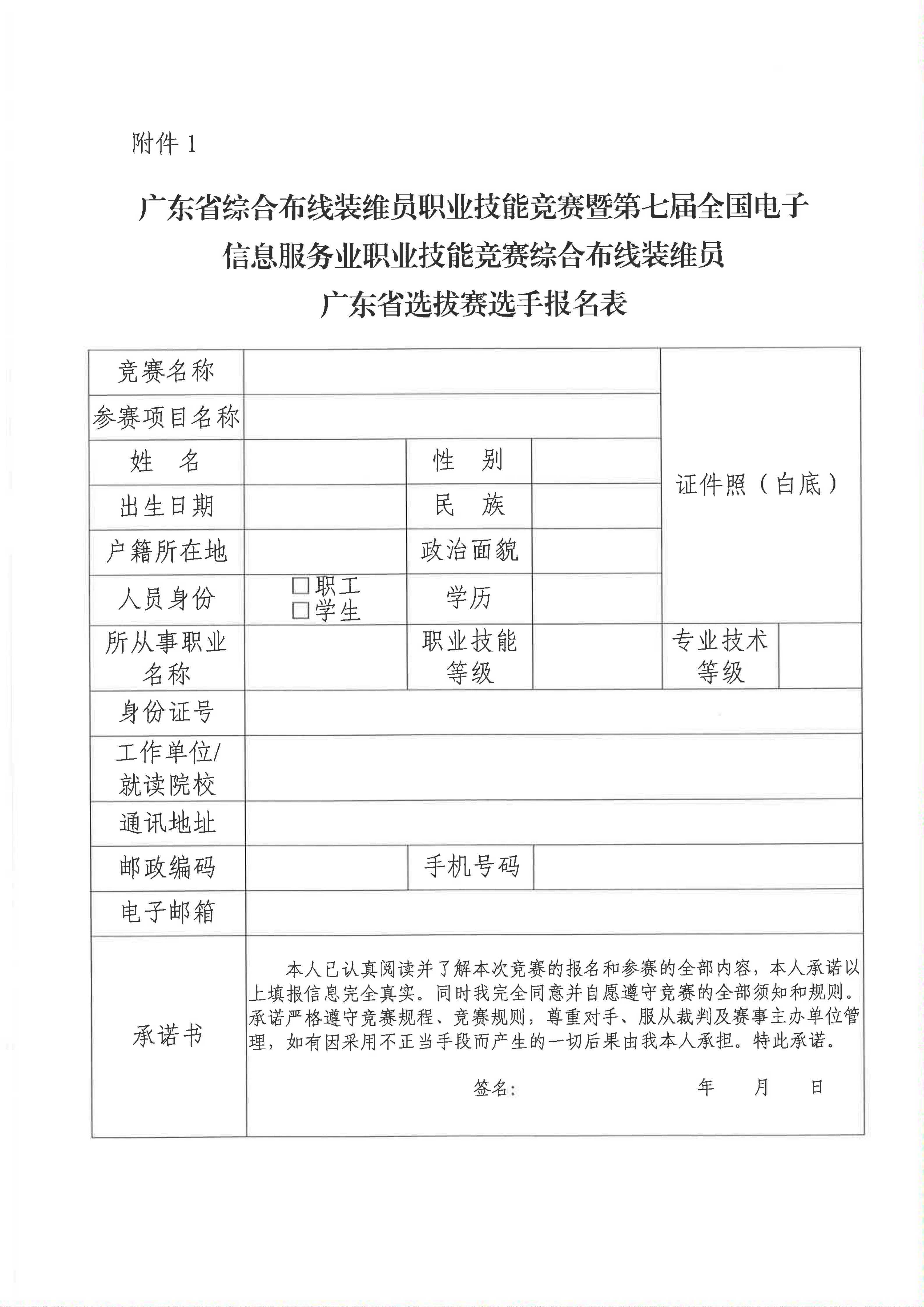 关于印发《广东省综合布线装维员职业技能竞赛暨第七届全国电子信息服务业职业技能竞赛综合布线装维员广东省选拔赛组织工作方案》的通知